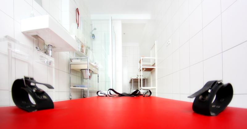 Ausgestattet: Gyn-Stuhl, Patientenbett, diverse Instrumente für Behandlungen, Zwangsjacken, OP-Kleidung, Segufix Ganzkörper-Varianten